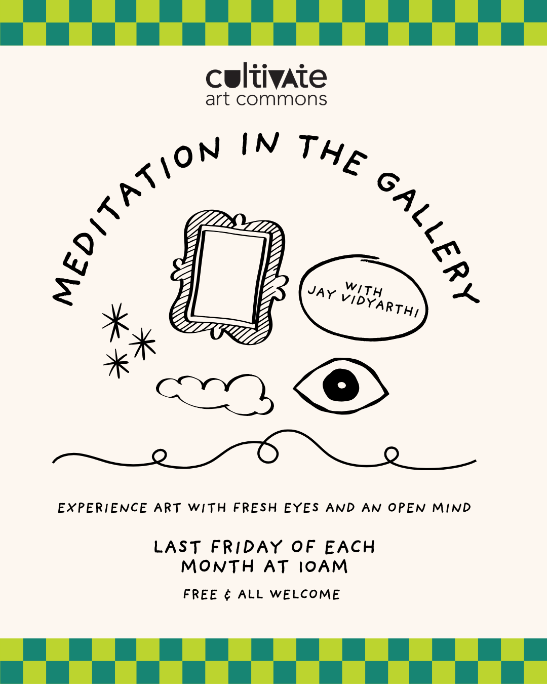 Meditation in the Gallery with Jay Vidyarthi Friday, June 26, 2026 10:00 a.m. 11:00 a.m. Cultivate Art Commons 370 King Street West Kingston, ON, K7L 2X4 Canada (map) Google Calendar ICS