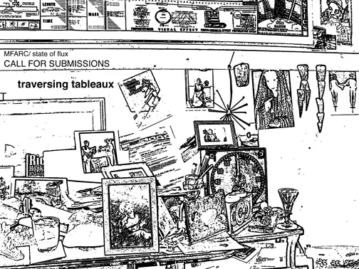 Materialist film experiments, raw video footage, performance-based interpretation, and virtual digitized simulations: Traversing Tableaux is about transitory moments; a fleeting, schizophrenic passage into the eclectism of time.